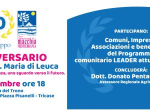Uno storico Anniversario che conferma un importante bilancio, un'esperienza consolidata con uno sguardo verso il futuro. Parteciperanno Comuni, Imprese, Associazioni e beneficiari del programma Leader attuato dal GAL. Concluderà l'incontro il Dott. Donato Pentassuglia, Assessore Regionale all'Agricoltura.