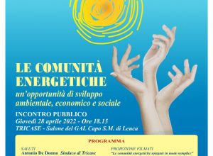 Incontro pubblico giovedì 28 aprile alle ore 18.30 - Sala Conferenze presso la sede del GAL Capo S.Maria di Leuca a Tricase in Piazza Pisanelli - Palazzo Gallone.