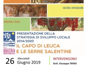 Mercoledì 26 Giugno prossimo alle 19.30, a Taviano presso Palazzo Marchesale, si svolgerà un incontro pubblico al quale interverranno: il Dott. Giuseppe TANISI, Sindaco di Taviano, il Rag. Rinaldo RIZZO, Presidente GAL Capo di Leuca e il Dott. Giosuè OLLA ATZENI, Direttore GAL Capo di Leuca. L’iniziativa si svolge per presentare la Strategia di Sviluppo Locale “il Capo di Leuca e le Serre Salentine”, la cui dotazione finanziaria ammonta a circa 7,5 milioni di euro di quota pubblica, approvata nell’ambito della Misura 19 del PSR Puglia 2014 – 2020 e per presentare i bandi per la concessione di contributi a fondo perduto nell’ambito degli interventi: 4.1 “Valorizzazioni delle produzioni tipiche locali” e 4.2 “Servizi al turismo rurale” L’iniziativa è rivolta anche a giovani e donne, che intendono avviare un’attività imprenditoriale, a operatori dei settori: turismo rurale e artigianato locale. L’incontro pubblico è rivolto anche alle aggregazioni di soggetti pubblici/privati in ambito sociale, ai gruppi di acquisto solidale e alle associazioni che si occupano di servizi di manutenzione ambientale che nell’ambito del PAL, saranno destinatarie di agevolazioni finanziarie.